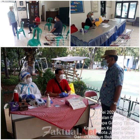 Faktual.Net, Jakarta Utara, DKI Jakarta-Sebanyak 80 warga Kelurahan Kelapa Gading Timur, Kelapa Gading, Jakarta Utara, yang baru kembali dari kampung halaman, Jumat (28/05/2021), menjalani tes antigen dimana hasilnya negatif.