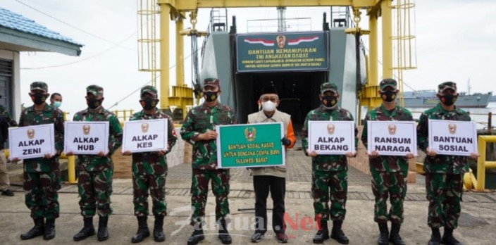 Faktual.Net, Mamuju, Sulbar, Pangdam XIV/Hasanuddin Mayjen TNI Andi Sumangerukka, S.E., menyerahkan bantuan dari Kepala Staf Angkatan Darat (KASAD) Jenderal TNI Andika Perkasa kepada Gubernur Sulbar berupa bantuan Rumah Sakit Lapangan, Jembatan Acrow Panel, dan Bantuan Sosial dari Mabesad kepada warga korban gempa bumi di provinsi Sulbar, bertempat di Dermaga Pelabuhan Feri Mamuju Kec. Simboro Kab. Mamuju Sulbar, Sabtu (23/01).