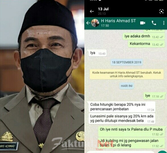 Membahas seputar kongkalikong Fee 20 persen pada proses proyek pembangunan infrastruktur kala itu, H berkomunikasi dengan salah seorang berinisial M.