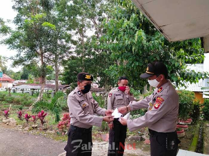 Lebih lanjut Kapolsek mengatakan bahwa Pembagian masker ini untuk digunakan anggota dalam setiap kegiatan di lapangan guna mencegah terpaparnya pandemi Virus Corona.