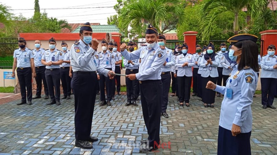 Faktual.Net, Kendari, Sultra — Kepala Balai Pemasyarakatan Kendari (Bapas) Kendari Hasrudin S.Sos, M.A.P turut apresiasi pegawai teladan dan memberikan penghargaan kepada La Mua SH, di hadapan pegawai – pegawai pada waktu apel pagi di halaman Bapas Kendari, Senin (05/07 2021).