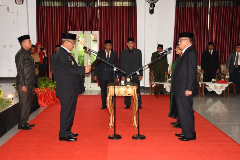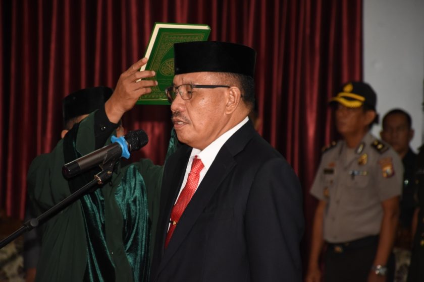 Faktual. Net, Tidore. Walikota Tidore Kepulauan H. Ali Ibrahim mengambil sumpah dan melantik H. Asrul Sani Soleman sebagai Sekretaris Daerah definitive, Senin (27/5/19) bertempat di Aula Sultan Nuku Kantor Walikota. Dihadiri Ketua dan Wakil Ketua TP PKK Kota Tidore Kepulauan,Unsur Forkompinda, Staf Ahli Walikota, Asisten Sekda, Ketua MUI Kota Tidore Kepulauan, Rektor UNNU, Pimpinan SKPD serta karyawan dan karyawati lingkup Pemda Kota Tidore.