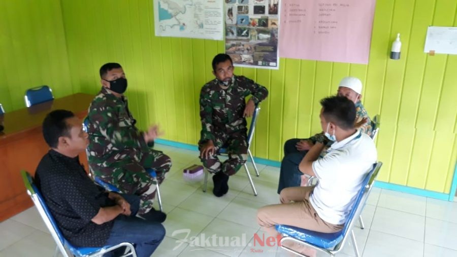Faktual.Net, Kutai Kartanegara, Kaltim, Bintara Pembina Desa (Babinsa) Koramil 0906-09/ Kota Bangun Kodim 0906/Tenggarong Sertu Yuwono bersama Serda Amin Tohari melaksanakan Komunikasi Sosial (Komsos) bersama Kepala Desa Liang Ilir Rodiani dan tokoh agama di kantor desa yang berada di jalan poros Kota Bangun Tenggarong Kecamatan Kota Bangun Kabupaten Kutai Kartanegara, Sabtu (18/12/2020).