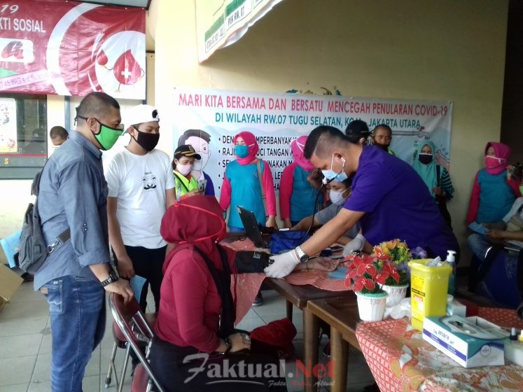 Faktual.Net, Jakarta-Rukun Warga (RW) 07, Kelurahan Tugu Selatan, Koja, Jakarta Utara bekerjasama dengan Palang Merah Indonesia (PMI) Jakarta Utara menggelar kegiatan donor darah sukarela (Dondarela), di balai warga RW 07, Jl. Raya Perjuangan, Minggui (17/05/2020).