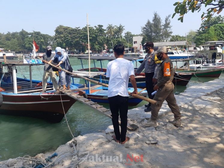 Terlihat selain Bhabinkamtibmas juga ada di lokasi Satpol-PP dan warga setempat yang membantu para wisatawan turun dari perahu menuju daratan.
