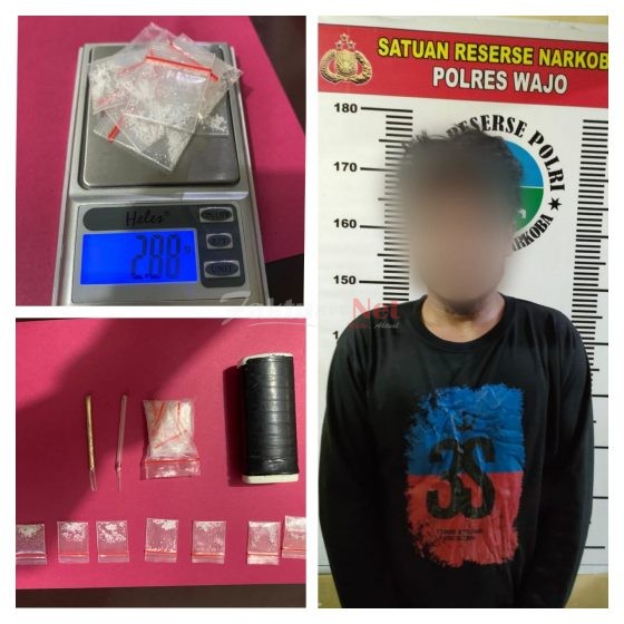 Melalui serangkaian tindakan penyelidikan, lelaki IR diamankan di Kecamatan Majauleng, Kabupaten Wajo bersama barang bukti. Dalam penangkapannya barang bukti berupa delapan sachet kristal bening diduga narkotika jenis shabu, 20 sachet kosong dan uang tunai sejumlah Rp. 550.000 yang diduga sebagai hasil penjualan.