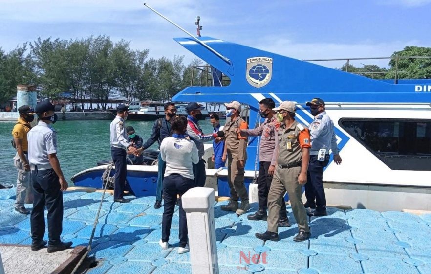 Diketahui, semua penumpang kapal baik warga masyarakat maupun wisatawan diimbau oleh aparat gabungan untuk menerapkan protokol kesehatan setiba di dermaga kedatangan.