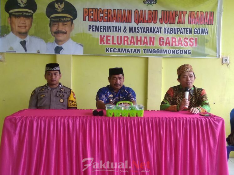 FAKTUAL.NET, GOWA-Bhabinkamtibmas Garassi Briptu Usman Polsek Tinggimoncong melaksanakan jumat ibadah bersama masyarakat KelurahanGarassi,