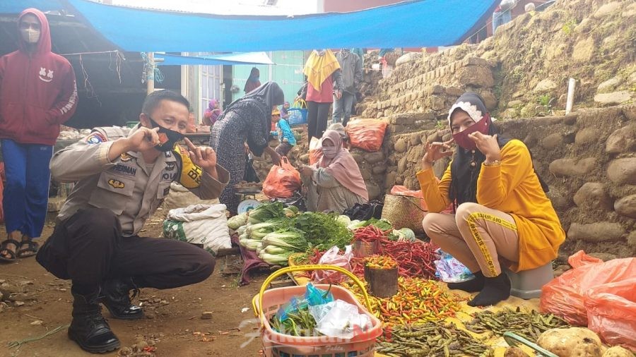 Pada kesempatan itu, Suherman tampak betkeliling pasar menyampaikan kepada para pedagang agar tetap menggunakan masker, jaga jarak dan sering cuci tangan.
