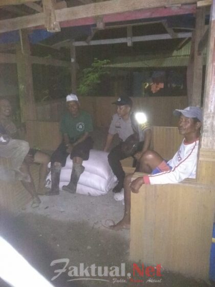 TOMPOBULU.GOWA_ Guna mencegah segala bentuk gangguan kamtibmas di wilayah binaan, Bhabinkamtibmas Desa Datara Polsek Tompobulu Polres Gowa Aipda Saenal menyambangi pos ronda di dusun Tonroa Desa Datara guna memberikan rasa aman bagi warga binaannya. Selasa (28/01/20) malam.
