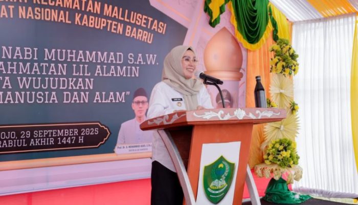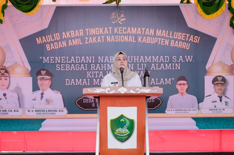 Faktual.net, Barru, Sulsel– Bupati Barru, Andi Ina Kartika Sari, S.H., M.Si., menghadiri Peringatan Maulid Akbar Tingkat Kecamatan Mallusetasi yang digelar oleh Badan Amil Zakat Nasional (BAZNAS) Kabupaten Barru di Lapangan Sepakbola Tunas Muda, Desa Bojo, Senin (29/9/2025) sore.