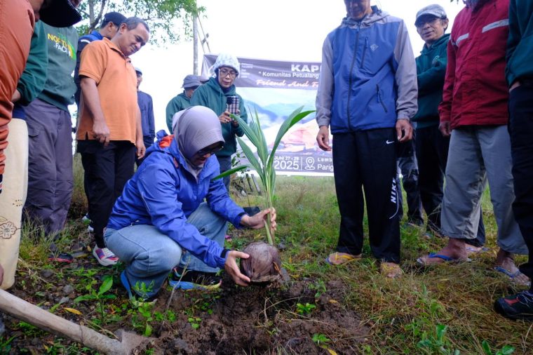 Di akhir kegiatan bupati menyempatkan diri menanam bibit pohon kelapa.