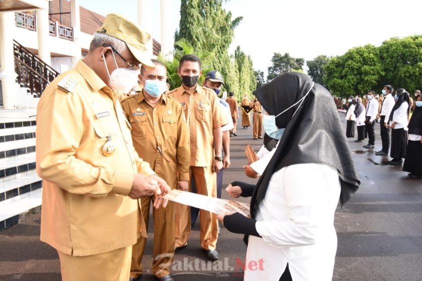 Faktual. Net, Tidore. Walikota Tidore Kepulauan Capt, H. Ali Ibrahim menyerahkan Surat Keputusan (SK) kepada 18 orang Calon Pegawai Pemerintah Dengan Perjanjian Kerja (P3K) dan Dua Calon Pegawai Negeri Sipil Sekolah Tinggi Transportasi Darat (STTD) Perhubungan.