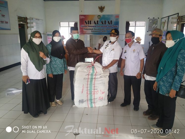 Faktual.net, Gowa – Penyerahan masker di aula kantor Camat Tompobulu yang di serahkan langsung oleh Camat Tompobulu H. Harifuddin Dan Ibu ketua Tim Penggerak PKK Hj. Rahmawati secara simbolis. 8/07/2020