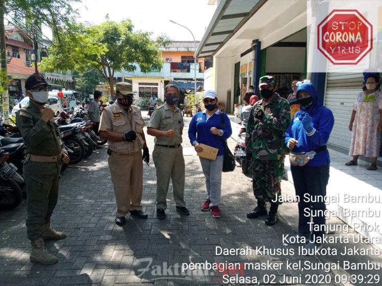 Faktual.Net, Jakarta-Kelurahan Sungai Bambu, Tanjung Priok, Jakarta Utara memberikan masker gratis buat warganya. Hal ini dilakukan selain untuk memutus mata rantai penyebaran Covid-19 juga untuk memastikan kesehatan warganya.