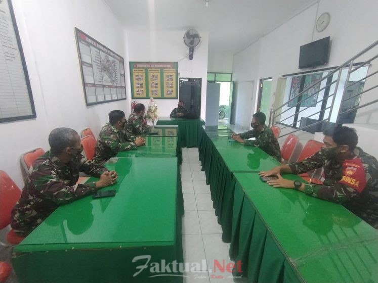 Faktual.Net, Surakarta Jawa Tengah – Komandan Koramil 03 Serengan Kodim 0735 Surakarta memberikan penekanan kepada anggota di saat pelaksanaan Apel Pagi di Ruang Data Koramil 03 Serengan, Jum’at (12/03/2021)