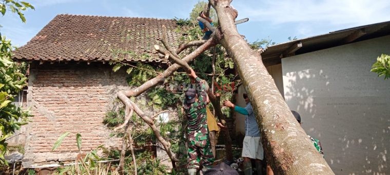 “Tidak ada korban jiwa dalam kejadian ini, namun ada pohon sengon yang tumbang menimpa rumah Bapak Solikhin dan mengakibatkan rumah mengalami kerusakan cukup parah,” kata Danramil.