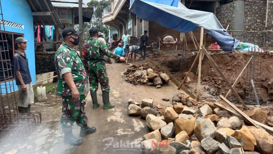 Faktual.Net, Batang, Jateng – Koramil 09/Blado bersama warga masyarakat melaksanakan karya bakti pembangunan tempat parkir di sebelah Masjid Al – Huda di Desa Bismo, Kecamatan Blado, Kabupaten Batang, Senin (1/2/2021).