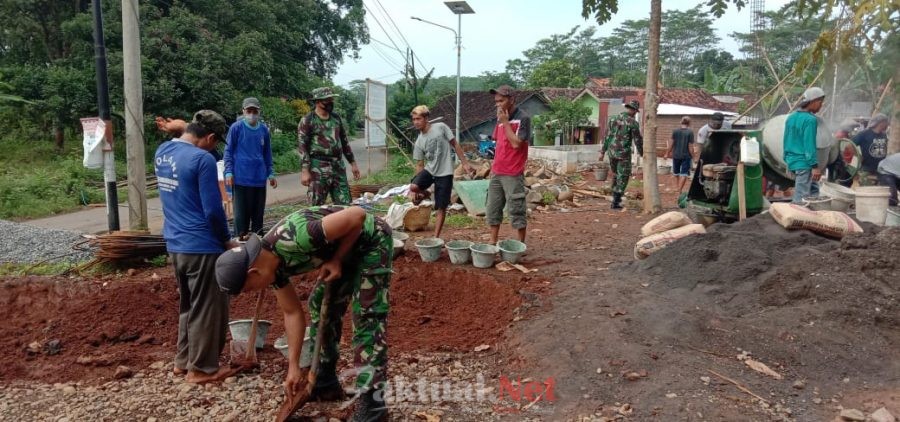 Tak hanya ikut karya bhakti saja, Danramil Batang Kapten Inf Bardi juga memberikan bantuan semen yang di serahkan secara simbolis kepada panitia pembangunan.