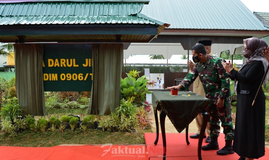 Faktual.Net, Samarinda, Kalimantan Timur, Danrem 091/ASN Brigjen TNI Cahyo Suryo Putro, S.I.P, M.S.i didampingi Ketua Persit Kartika Chandra Kirana Koorcab Rem 091 PD VI/Mulawarman resmikan taman pendidikan Al-qur’an Darul Jihad dan Demplot integrated organic farming system (IFS) Kodim 0906/Tenggarong Kelurahan Timbau Kecamatan Tenggarong, Kabupaten Kutai Kartanegara (Kukar), Senin (11/1/2021).