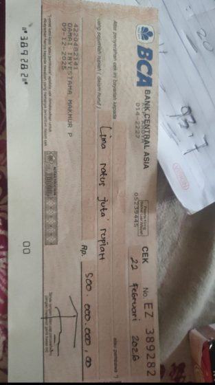“Awalnya oknum kepala desa ini pinjam uang, namun seketika di tagih pembayaran hanya memberikan janji-janji saja tetapi tidak terealisasikan, malah saya hanya diberi cek yang ternyata itu cek kosong,” terang Asrofi.