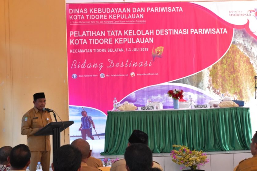 Faktual. Net, Tidore. Pemerintah Daerah Kota Tidore Kepulauan melalui Dinas Kebudayaan dan Pariwisata Kota Tidore Kepulauan menggelar Pelatihan Tata Kelola Destinasi Pariwisata yang dibuka secara resmi oleh Asisten Setda Bidang Ekonomi dan Kesra Muhammad Yasin yang bertempat di Aula Kantor Camat Tidore Selatan, Senin (1/7/19).
