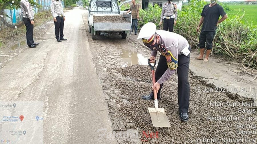 “Personel Ditlantas Polda Banten menutup jalan yang rusak tersebut dengan urugan, yang merupakan upaya agar tidak terjadi kecelakaan lalulintas di lokasi tersebut,” ujar Kombes Pol Rudy Purnomo.