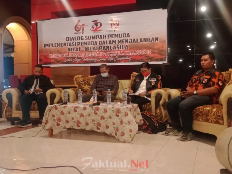Faktual.Net, Maros, Sulsel. Dialog Sumpah Pemuda yang dilaksanakan oleh Pemuda Pancasila Kabupaten Maros dihadiri langsung oleh Ketua MPW Pemuda Pancasila Propinsi Sulawesi Selatan Diza Rasyid Ali.