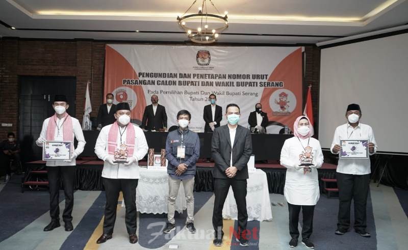 Faktual.Net, Serang, Banten. Bertempat di salah satu hotel yang ada di Kabupaten Serang, Komisi Pemilihan Umum (KPU) Kabupaten Serang melakukan pengundian nomor urut dua pasangan calon (Paslon) Bupati dan Wakil Bupati Serang yang akan mengikuti kontestasi politik Pilkada serentak, Kamis (24/09/2020)