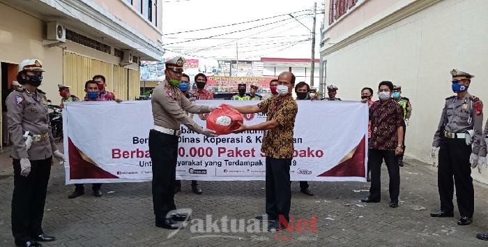 Faktual.Net, Gowa- Dalam Moment Ops Ketupat 2020, Sat lantas Polres Gowa Selalu intens dalam kegiatan Bakti sosial, seperti yang tampak pada pagi ini Kasat lantas Polres Gowa AKP Mustari SH menerima Paket Bantuan Sembako dari sahabat peduli komunitas bersama dinas koperasi dan kepolisian, Jum’at 15/05/2020 sekitar pukul 08.30 wita.