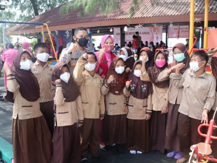 Dalam kunjungan terlihat Kapolres Kepulauan Seribu bersama Ketua Bhayangkari Cabang Kepulauan Seribu langsung menyapa satu persatu anak peserta Vaksin, melihat langsung anak yang sedang menjalani suntik vaksin, memberikan bingkisan makanan kepada anak yang baru selesai vaksin serta membagikan buku bacaan.