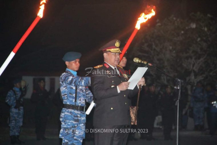 Apel kehormatan dipimpin langsung Kapolda Sultra Irjen Pol Teguh Pristiwanto selaku Inspektur Upacara. Rangkaian diawali dengan penghormatan bagi arwah pahlawan, penyalaan obor, pembacaan naskah amanat, mengheningkan cipta, pematian obor, doa, dan penghormatan terakhir.
