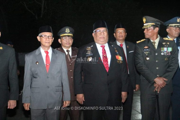 Faktual.Net, Kendari — Gubernur Sulawesi Tenggara (Sultra) H. Ali Mazi, S.H menghadiri Apel Kehormatan dan Renungan Suci di Taman Makam Pahlawan Watubangga Kota Kendari, Dalam Rangka memperingati HUT Ke-78 Proklamasi Kemerdekaan RI Tahun 2023, Kegiatan berlangsung pada tengah malam pukul 24.00 Wita, Rabu (16 Agustus 2023).