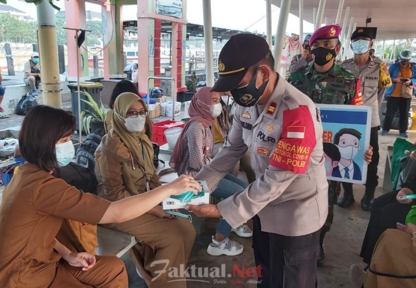 Faktual.Net, Kepulauan Seribu, DKI Jakarta– Polres Kepulauan Seribu Bersama Tiga Pilar dan Polsek jajaran hari ini membagikan 2400 masker medis gratis kepada warga Kepulauan Seribu secara serentak dengan tema Jakarta Bermasker, Selasa (20/04/2021).