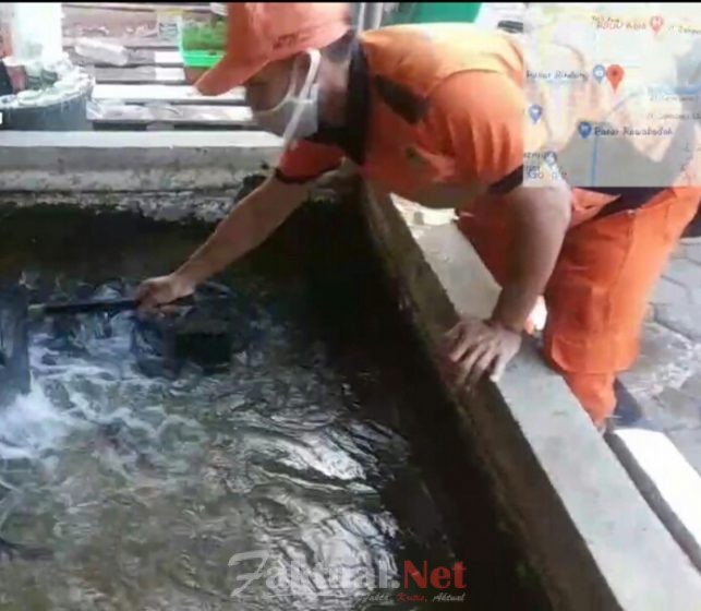 Faktual.Net, Jakarta-Petugas Penanganan Prasarana dan Sarana Umum (PPSU) Kelurahan Koja, Kecamatan Koja, Jakarta Utara memanen ikan lele yang merupakan hasil dari budidaya ikan lele dengan memanfaatkan lahan yang ada di kantor kelurahan.