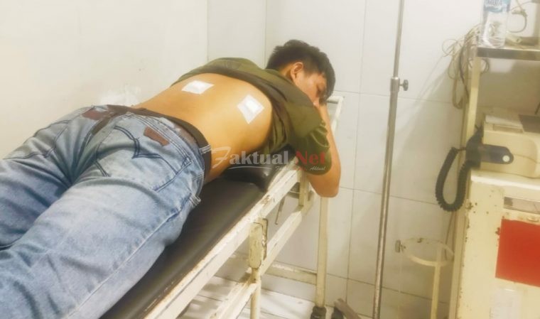 Begitu cepatnya kejadian sehingga korban tak sadar bila bagian punggungnya terkena tusukan benda tajam oleh salah satu pelaku.
