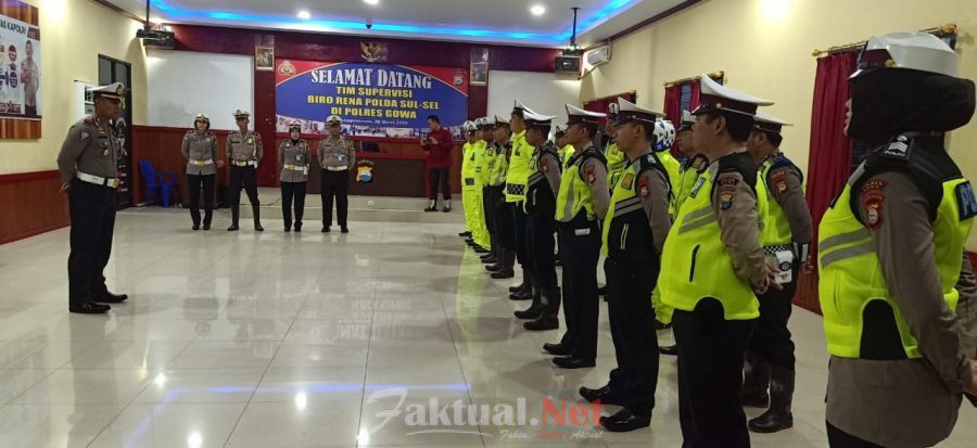 Faktual.Net, Gowa-Sebelum Pelaksanaan Tugas Di lapangan Seluruh Personil Sat Lantas Polres Gowa Melaksanakan Apel Pagi Di Aula Polres Gowa, Jum’at 06/03/2020