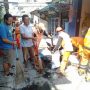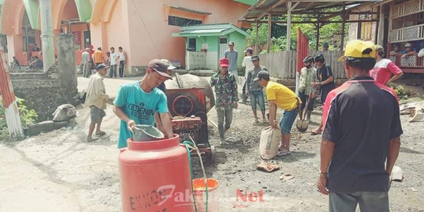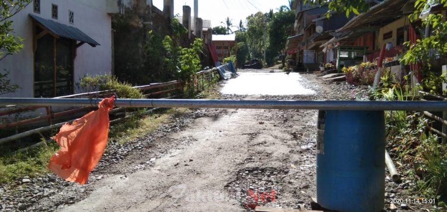 Penutupan jalan tersebut dilakukan karena adanya kegiatan warga yang sedang melakukan pekerjaan pengecoran jalan yang berluban, terlihat puluhan warga yang saling bergotong royong melaksanakan proses pekerjaan jalan tersebut.