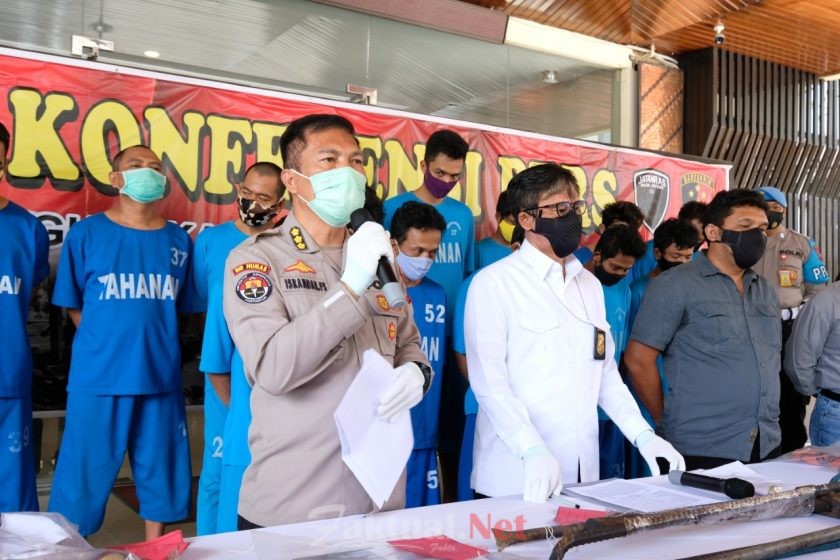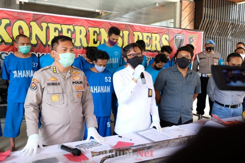 Faktual.Net, Semarang, Jateng – Tim Jatanras Ditreskrimum Polda Jawa Tengah laksanakan konferensi Pers terkait aksi pencurian kabel telkom yang dilakukan 14 orang komplotan pencurian di Jl. Supriyadi Semarang, pada Kamis (12/11/2020).