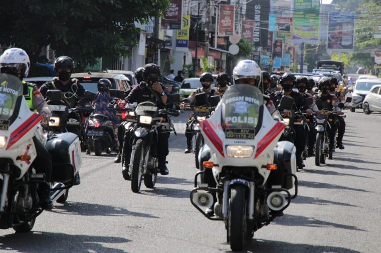 Jelan Pertandingan PSM Vs Bali United, Polres Parepare Bersama Tim Gabungan Laksanakan Show Off Force