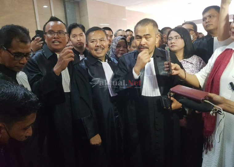 Faktual.net – Jakarta Selatan, DKI Jakarta – Kamaruddin Simanjutak dikawal puluhan pengacara atas tuduhan pencemaran nama baik memenuhi panggilan penyidik Direktorat Tindak Pidana Siber Bareskrim Polri untuk diperiksa sebagai tersangka atas kasus dugaan pencemaran nama baik Direktur Utama PT. Taspen ANS Kosasih, Senin (14/8/2023).