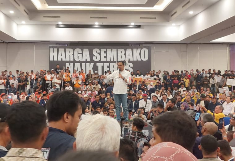 “Hanya enam jam waktunya melakukan perubahan, tapi bekerja persiapannya tidak bisa hanya enam jam, peristiwa pencoblosannya enam jam, namun kesiapannya harus siap dari sekarang, siap untuk menjangkau keluarga, siap menjangkau tetangga, siap menjangkau siapa saja yang ditemui untuk mengajak perubahan, nomornya, Satu. Tanya akal sehat mereka, apakah masih ingin harga beras mahal, pendidikan mahal, BBM susah, pasti jawabannya kami ingin beras murah, tetapi harga beras mahal tetapi uangnya tidak diterima petani, petani terima harga gabahnya murah, kami ingin BBM terjangkau, kami ingin pendidikan terjangkau, itu akal sehat kita, baru setelah itu tawarkan perubahan pilih nomor Satu, partainya pilih Nasdem, PKS, PKB, Umat,” orasi Anis Baswedan didampingi para petinggi empat partai pengusung, anggota DPR RI asal Sultra terlihat Hj Tina Nur Alam, serta caleg DPR RI dari PKS La Ode Ida dan caleg provinsi serta caleg kabupaten-Kota dari keempat partai pengusung.