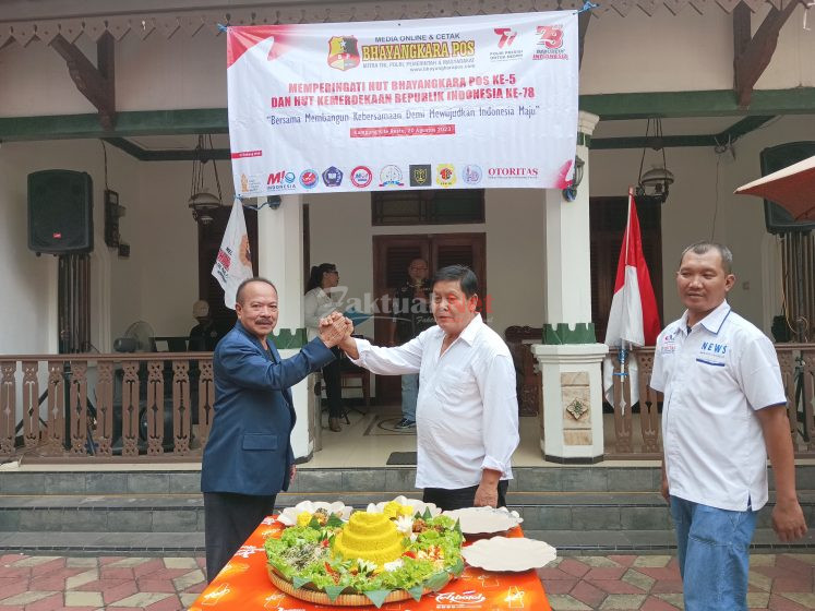 Acara puncak Perayaan HUT Ke 5 Media Bhayangkara Pos dan HUT Ke 78 RI dilengkapi dengan Pemotongan Nasi Tumpeng yang dilakukan oleh Pimred Bhayangkara Pos Effendi Nursalim, Ketua IPJI DKI Heri Solaiman, S.H., Pimprus PT Otoritas Multimedia Indonesia Andi Muhammad Nirmansyah.