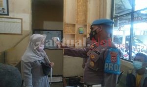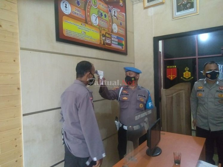 Masyarakat yang datang ke kantor polisi di cek suhu tubuhnya