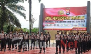 Faktual.Net, Serang, Banten – Kepolisian Daerah (Polda) Banten gelar Apel Pergeseran Pasukan Pengamanan TPS Pilkada Bupati/Walikota dan Hitung Suara Pilkada Serentak tahun 2020 di lapangan apel Mapolda Banten, Senin (07/12/2020).