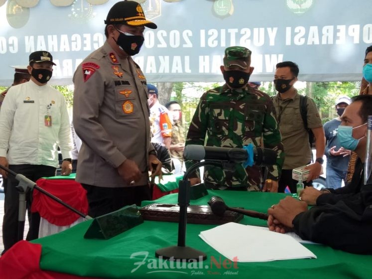 Jakarta, Faktual.Net-Kapolda Metro Jaya Irjen Pol Nana Sudjana beserta Pangdam Jaya Mayjen TNI Dudung Abdurachman meninjau pelaksanaan Operasi Yustisi di Jalan Danau Sunter Selatan, Tanjung Priok, Jakarta Utara, Jumat (18/09/2020).