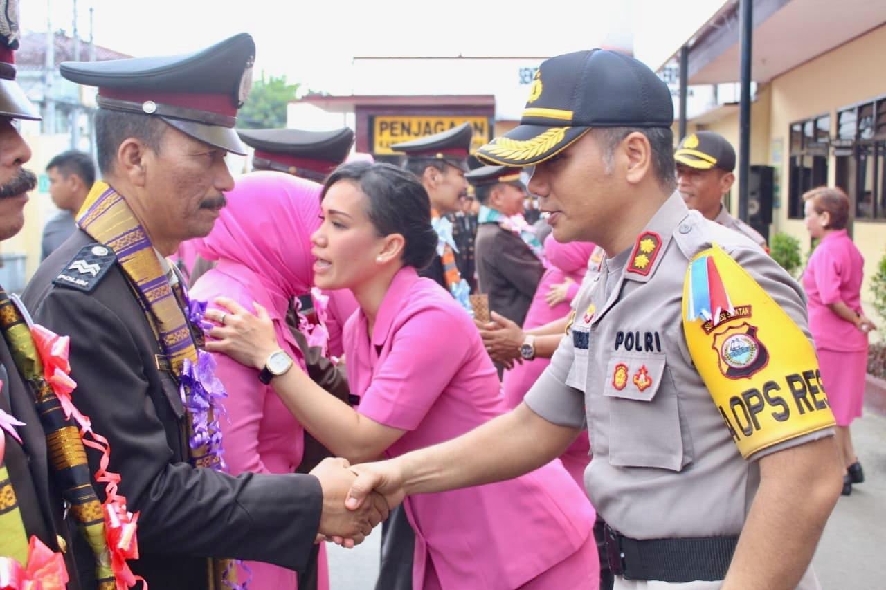 Kapolres bersama sang istri pun terlihat menjabat tangan para wisudawan beserta istrinya satu per satu, seraya menyampaikan ungkapan apresiasinya atas pengabdian yang telah dilakukan untuk Polri hingga masa pensiun.
