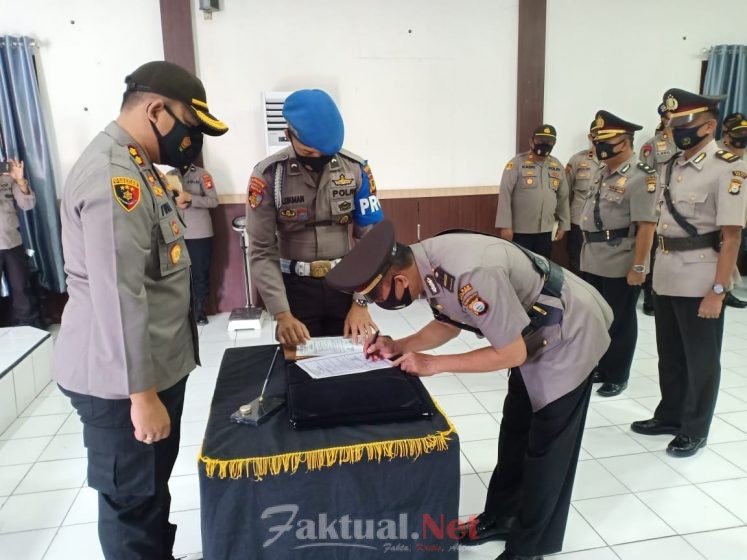 Faktual.Net, Sinjai, Sulsel, Bertempat diruang Aula Parama Satwika Mapolres Sinjai, Kepala Kepolisian Resor Sinjai Ajun Komisaris Besar Polisi (Akbp) Iwan Irmawan, S.Ik.,M.Si pimpin upacara serah terima jabatan Kabag Sumda, Kapolsek Sinjai Utara dan Kapolsek Sinjai Timur, yang dihadiri oleh Pejabat Utama, Para Kasat, Kapolsek dan Perwira Staf Polres Sinjai sebagai peserta upacara. Rabu (23/12/2020).