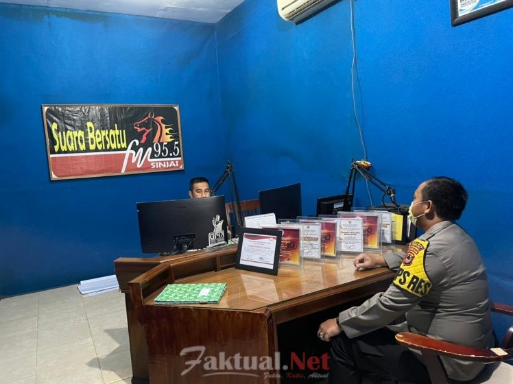 Faktual.Net, Sinjai, Sulsel – Bertempat di Kantor Diskominfo Pemkab Sinjai, melalui siaran Radio Pemerintah Kabupaten Sinjai “Suara Bersatu FM” Kapolres Sinjai Akbp Iwan Irmawan, S.Ik., M.Si sosialisasikan Tilang elektronik.