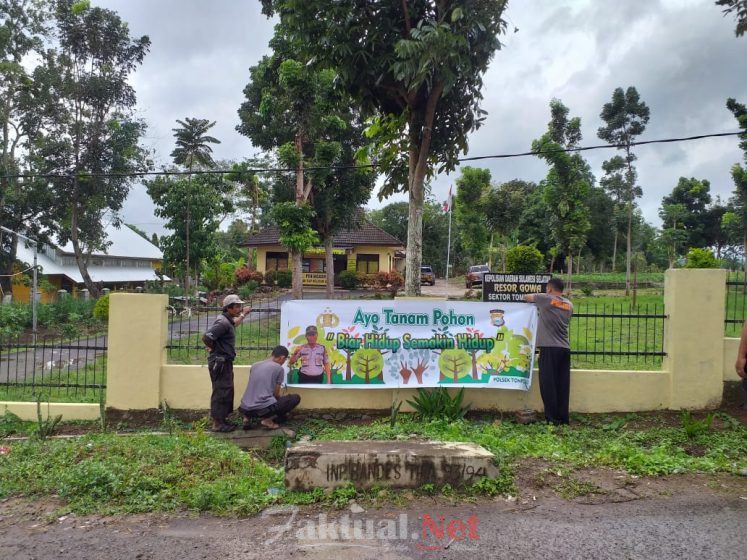 FAKTUAL.NET.GOWA- Menindak lanjuti program Kapolri Jenderal Polisi Idham Azis tentang penghijauan dengan melakukan penanaman pohon di seluruh halaman kantor polisi yang ada di Indonesia, Polsek Tompobulu Polres Gowa memasang spanduk ajakan kepada masyarakat untuk ikut berpartisipasi dalam menanam pohon.